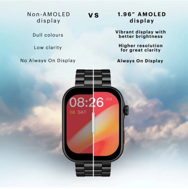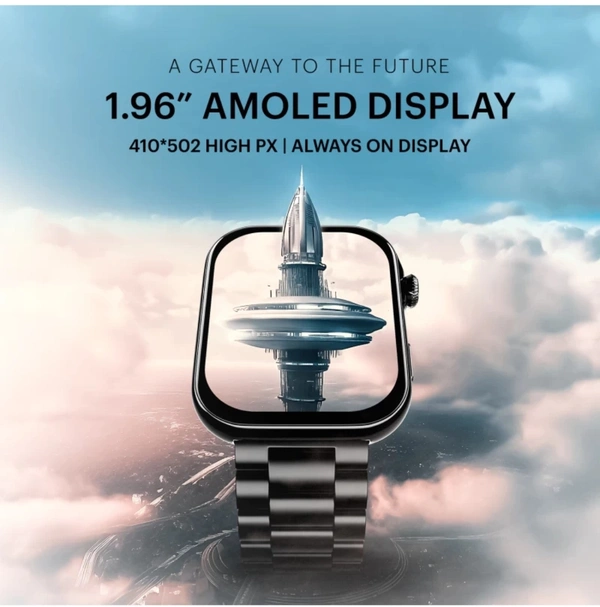 Noise Vision 3 with 1.96" AMOLED display with Thin Bezel, Metallic Build Smartwatch (Metallic Black Strap, Regular)